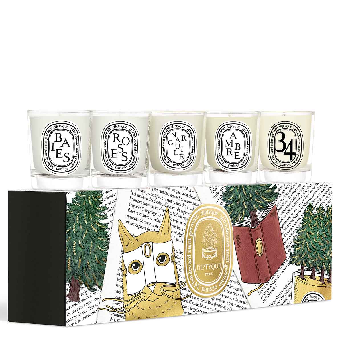 El Diptyque 5 Mini Candle Set reúne cinco de las velas más emblemáticas de la Maison en un cofre pensado para descubrir la riqueza de su universo olfativo.