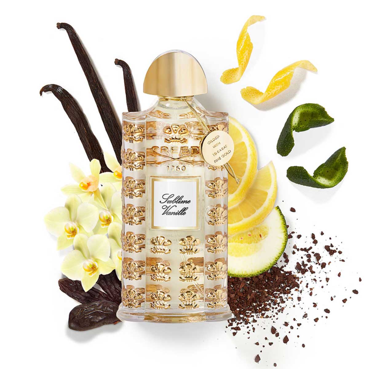 Sublime Vanille Eau de Parfum es una fragancia envolvente y atemporal de la prestigiosa colección Les Royales Exclusives de The House of Creed, donde cada creación se concibe como una auténtica obra de arte de la alta perfumería. Presentada en un refinado frasco de vidrio Pochet hecho a mano, grabado con el escudo de la familia Creed, esta composición celebra la sensualidad de la vainilla en su expresión más elegante.