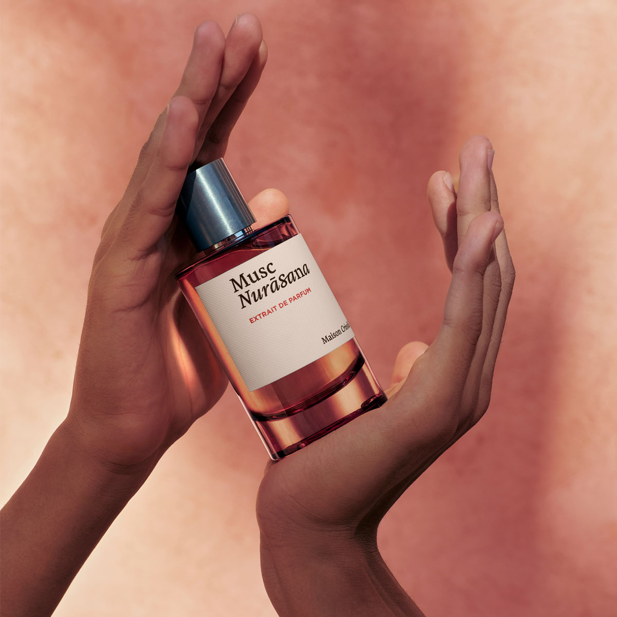 Musc Nurāsana by Maison Crivelli es una fragancia que nace de una experiencia sensorial muy concreta: el momento de estirarse en una terraza al amanecer, cuando el mundo empieza a despertar. Es un extracto de perfume unisex. “Nur” significa “luz” en árabe y “asana” se refiere a las posturas de yoga en sánscrito.